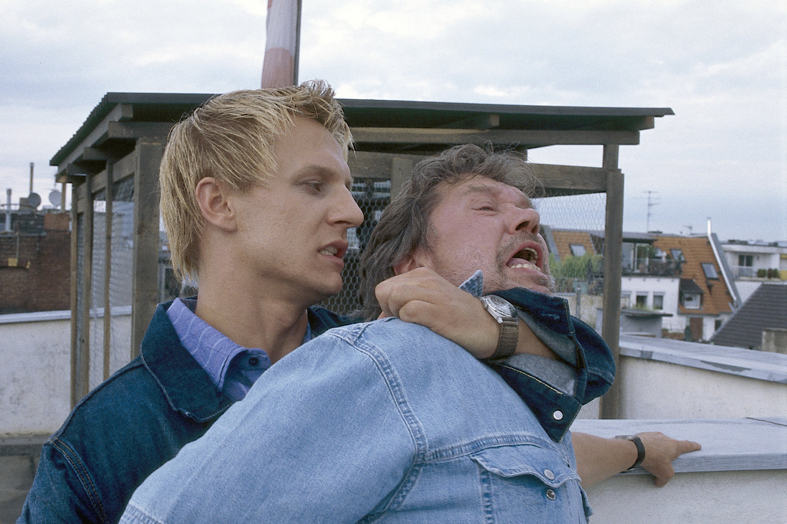 Mietsache MordTobi (Mike Hoffmann) überwältigt Erwin Wohlrab (Bernd Tauber), der seinerseits einen Angriff auf Tobi geplant hatte. Deshalb aber muss er nicht zwangsläufig auch Stadlers Mörder gewesen sein.Bild: © ZDF und Jürgen Thiele