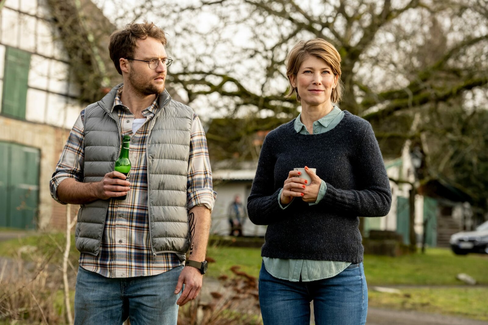 AuszeitHauptkommissarin Helena Jung (Sonja Baum, r.) macht Urlaub auf einem Hof im Bergischen Land. Maik Frohnert (Christian Hankammer, l.), der dort jobbt, bietet an, ihr die Gegend zu zeigen. Doch am nächsten Morgen ist er plötzlich verschwunden.Bild: © ZDF und Martin Rottenkolber.