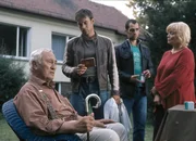 Liebe und Tod in Moskau (1)Identität: Günter Naumann als Hermann Deiritz, Marco Girnth als Kriminaloberkommissar Jan Maybach, Gabriel Merz als Kriminalkommissar Miguel Alvarez, Karin Ugowski als Hanne DeiritzBild: © SRF/ZDF/Uwe Frauendorf