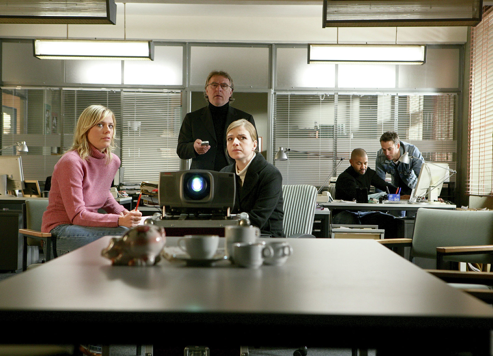 Mordsache JugendklubEin anspruchsvoller Fall: Melanie Marschke als Kriminaloberkommissarin Ina Zimmermann, Andreas Schmidt-Schaller als Hauptkommissar Hajo Trautzschke, Ute Springer als Staatanwältin Frau Dr. Zenner, Tyron Ricketts als Kriminalkommissar Patrick Grimm, Marco Girnth als Kriminaloberkommissar Jan MaybachBild: © SRF/ZDF/Uwe Frauendorf