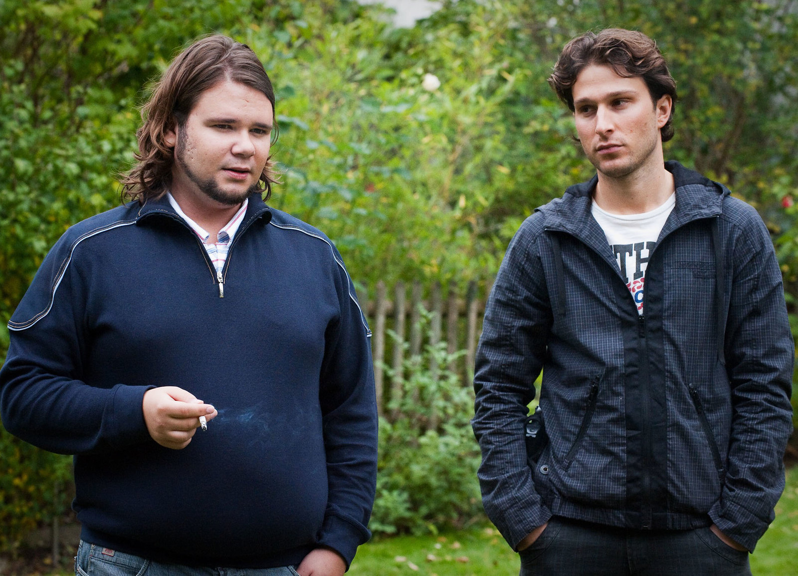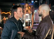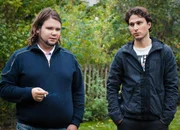 Das ErbeZurede stellen: Tim Oliver Schultz als Enkelsohn der Ermordeten, Tyron Ricketts als Kriminalkommissar Patrick GrimmBild: © SRF/ZDF /Uwe Frauendorf