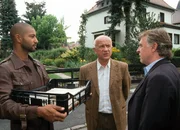 Der tote NachbarBeweismittel: Tyron Ricketts als Kriminalkommissar Patrick Grimm, Christian Grashof als Josef Dahlmann, Andreas Schmidt-Schaller als Hauptkommissar Hajo TrautzschkeBild: © SRF/ZDF/Uwe Frauendorf