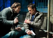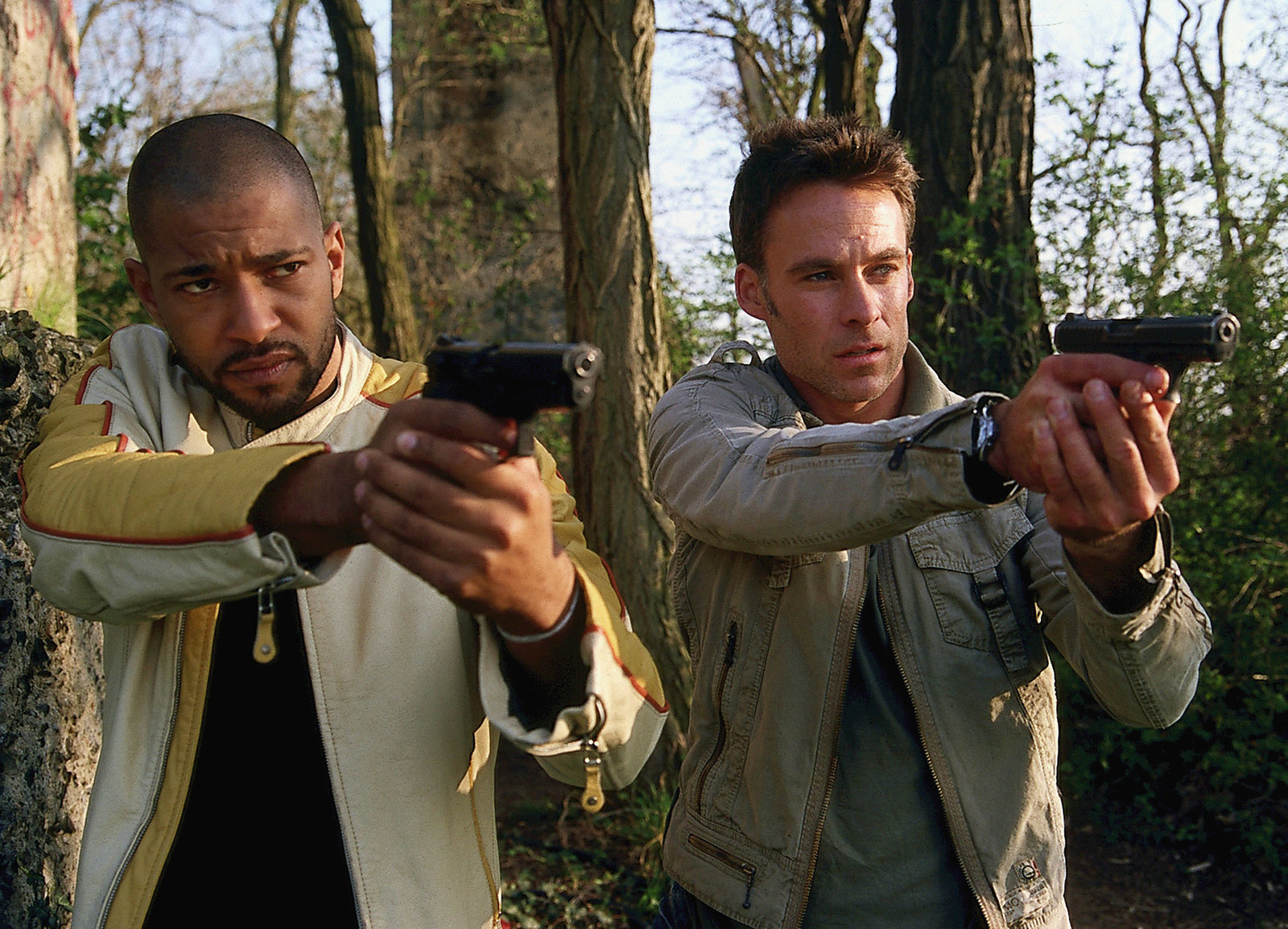 Auf dem KriegspfadIn Aktion: Tyron Ricketts als Kriminalkommissar Patrick Grimm, Marco Girnth als Kriminaloberkommissar Jan MaybachBild: © SRF/ZDF /Uwe Frauendorf