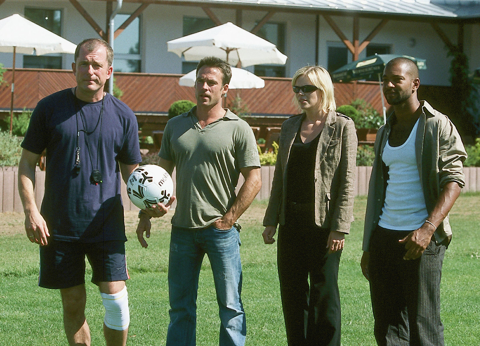 Heile WeltPersonenbewachung: Martin Lindow als David Rietz, Marco Girnth als Kriminaloberkommissar Jan Maybach,Melanie Marschke als Kriminaloberkommissarin Ina Zimmermann, Tyron Ricketts als Kriminalkommissar Patrick GrimmBild: © SRF/ZDF /Uwe Frauendorf