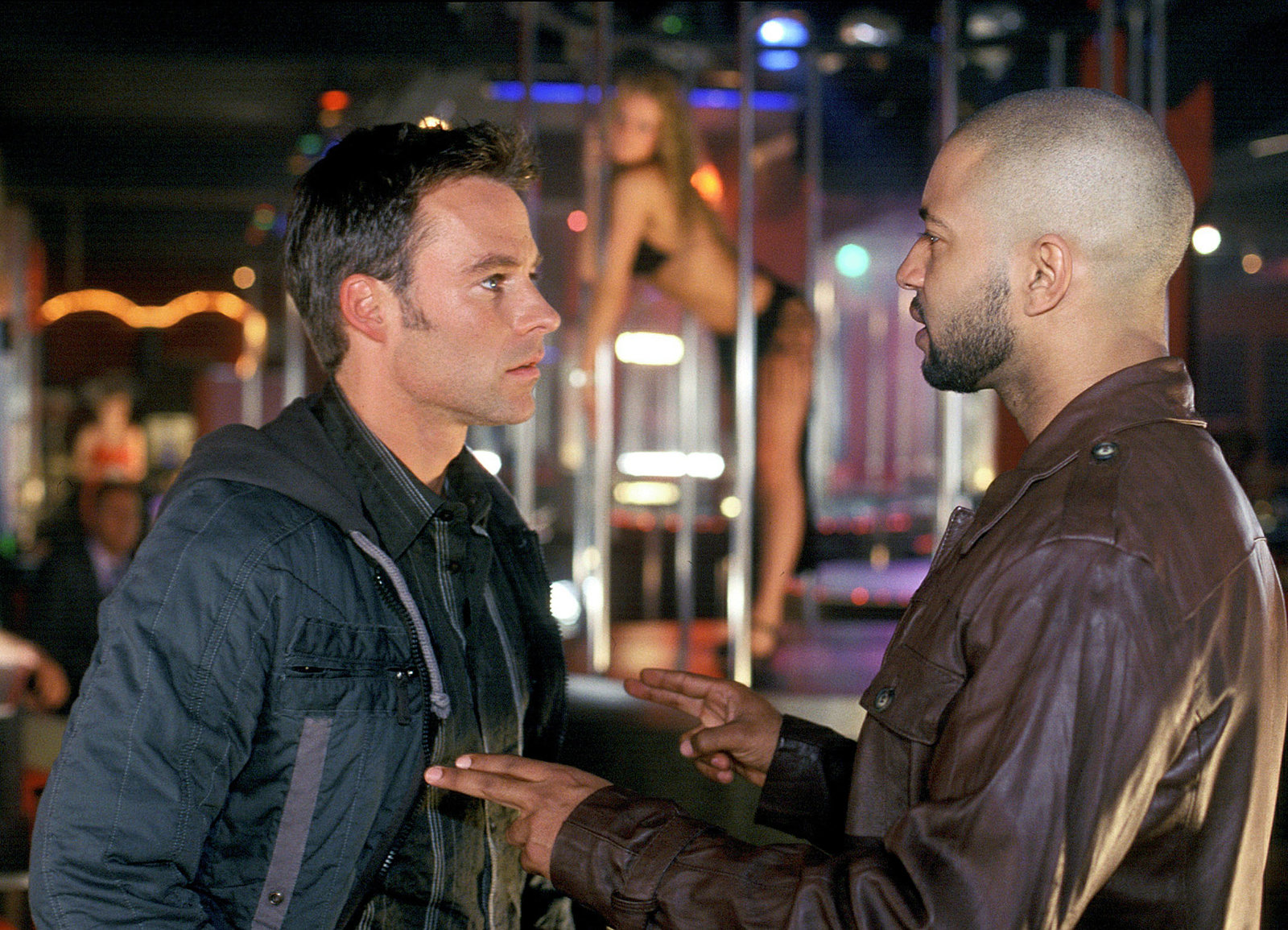 Der KundeBefragung im Strip-Club: Marco Girnth als Kriminaloberkommissar Jan Maybach, Tyron Ricketts als Kriminalkommissar Patrick GrimmBild: © SRF/ZDF /Uwe Frauendorf