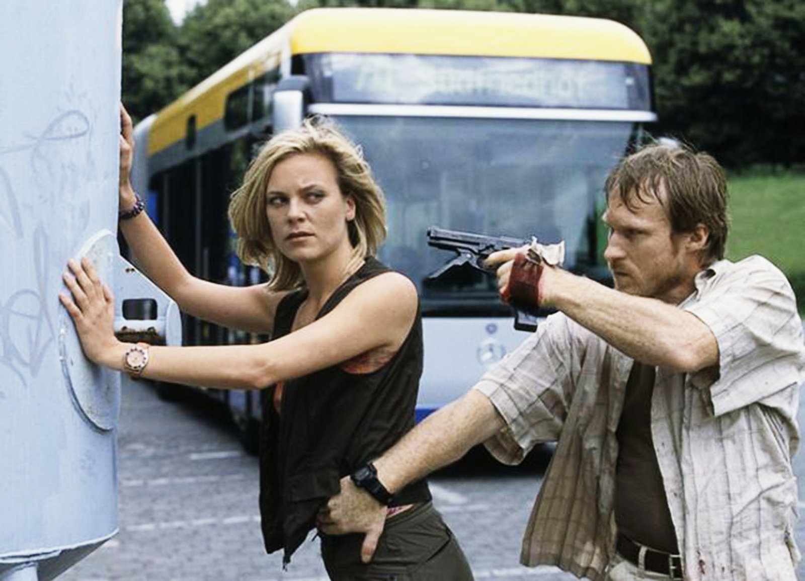 Dickes BlutHände hoch: Melanie Marschke als Kriminaloberkommissarin Ina Zimmermann, Christian Blümel als Tobias ZimmermannBild: © SRF/ZDF/Uwe Frauendorf