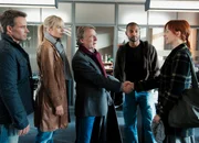ZahltagDie neue Praktikantin: Marco Girnth als Kriminaloberkommissar Jan Maybach, Melanie Marschke als Kriminaloberkommissarin Ina Zimmermann, Andreas Schmidt-Schaller als Hauptkommissar Hajo Trautzschke, Tyron Ricketts als Kriminalkommissar Patrick Grimm, Annika Ernst als Solveig LamehrBild: © Copyright SRF/ZDF/Uwe Frauendorf