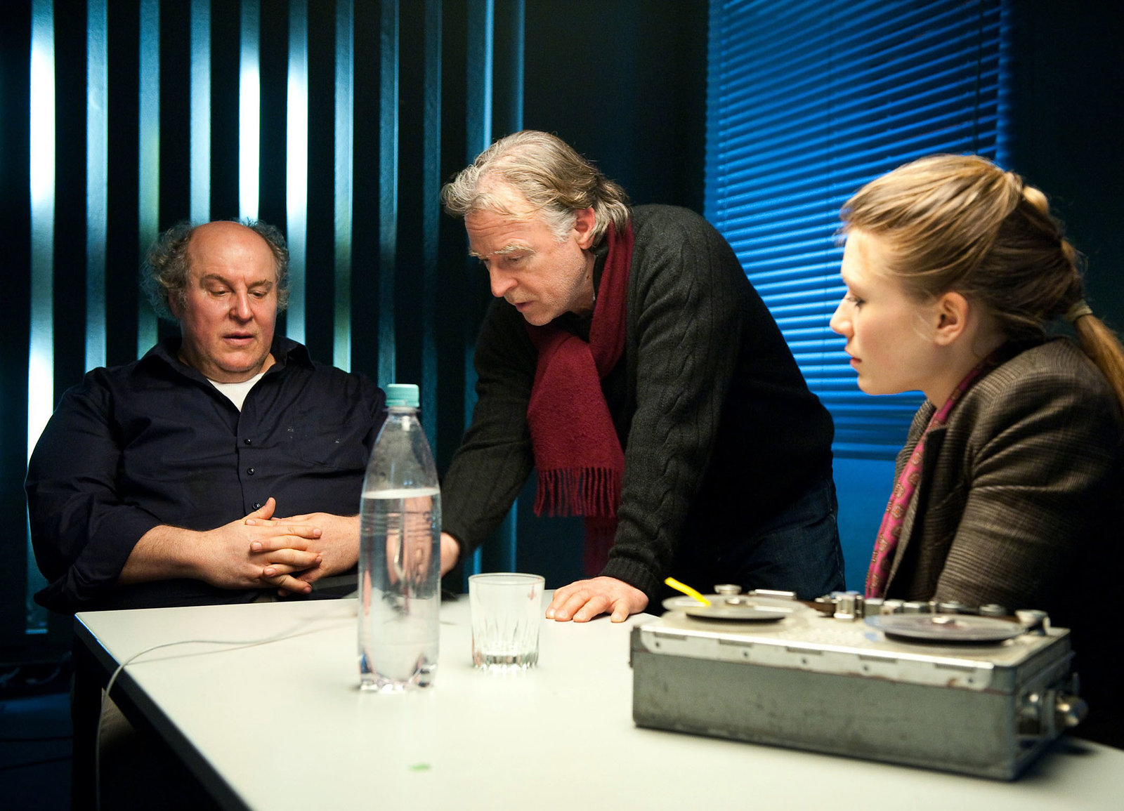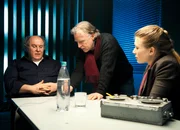 Wettlauf mit dem TodDas Verhöhr: Josef Ostendorf als Ferdinand Preuss, Andreas Schmidt-Schaller als Hauptkommissar Hajo Trautzschke, Rebecca Rudolph als Psychologin Lilly BraunBild: © SRF/ZDF/Uwe Frauendorf