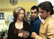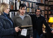 BücherwahnNeue Beweismittel: Melanie Marschke als Kriminaloberkommissarin Ina Zimmermann, Ole Puppe als Matthias Schleiz, Gabriel Merz als Kriminalkommissar Miguel AlvarezBild: © SRF/ZDF/Uwe Frauendorf