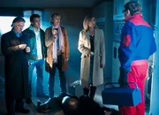 Leipzig ohne SaftTödlicher Stromschlag: Andreas Schmidt-Schaller als Hauptkommissar Hajo Trautzschke, Marco Girnth als Kriminaloberkommissar Jan Maybach, Melanie Marschke als Kriminaloberkommissarin Ina Zimmermann, Anna Stieblich als Prof. Rossi, Christian Ahlers als TechnikerBild: © SRF/ZDF/Uwe Frauendorf