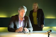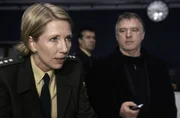Die blinde ZeuginAm Tatort trifft Hajo (Andreas Schmidt-Schaller, r.) auf die neue Pathologin Dr. Conradi (Margrit Sartorius, l.).Bild: © Uwe Frauendorf