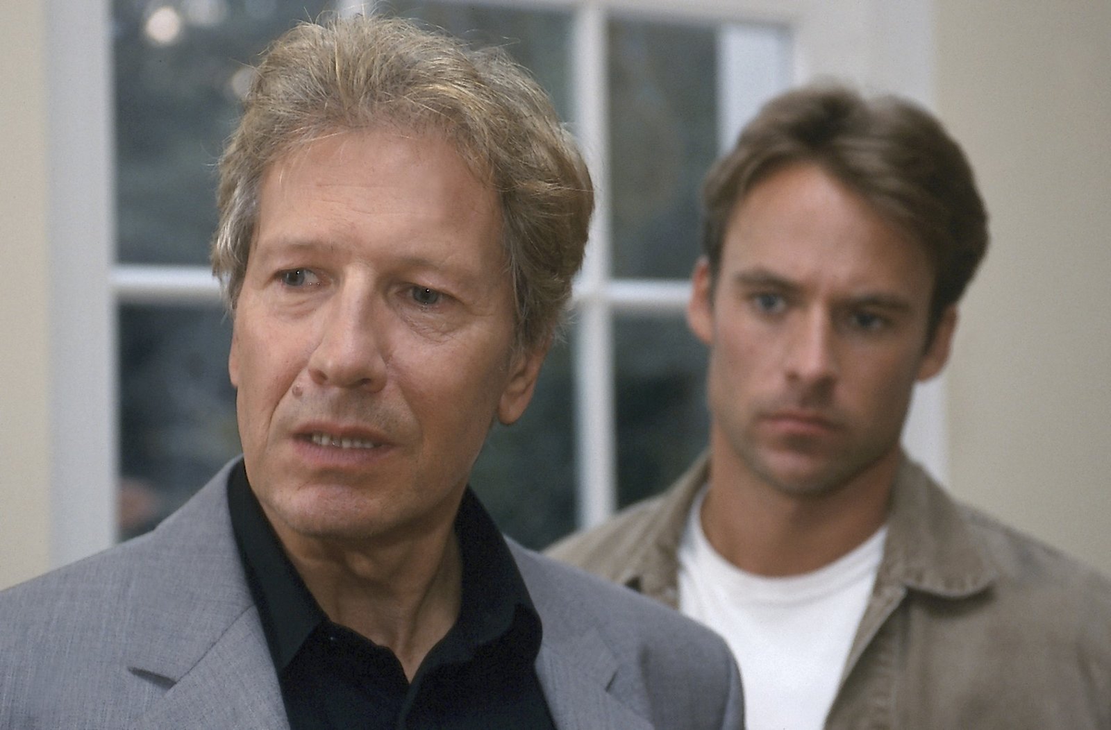 Die WitweJan (Marco Girnth, r.) befragt Corinnas Schwager, Alexander von Saalfeld (Bernd Herzsprung, l.).Bild: © Uwe Frauendorf