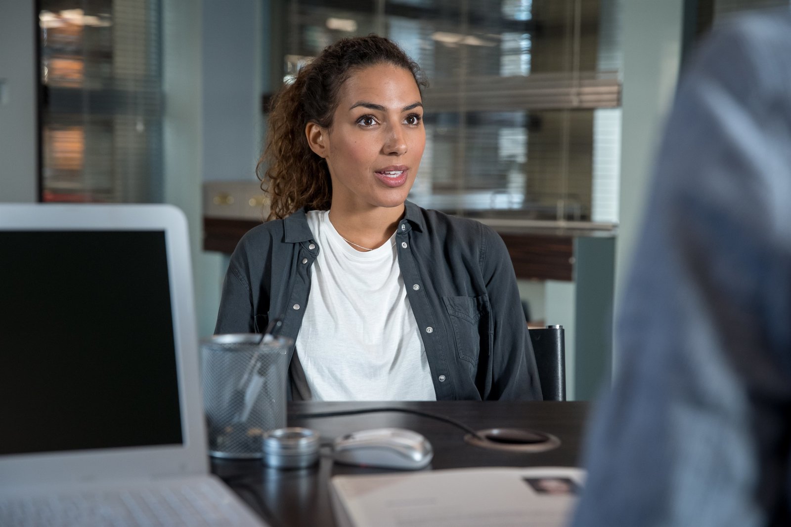 BewährungsprobeKim Nowak (Amy Mußul) bewirbt sich auf die vakante Stelle bei der SOKO Leipzig.Bild: © ZDF und Uwe Frauendorf.