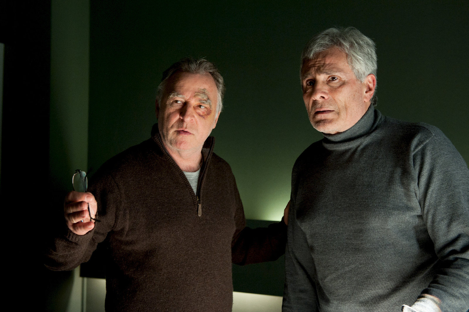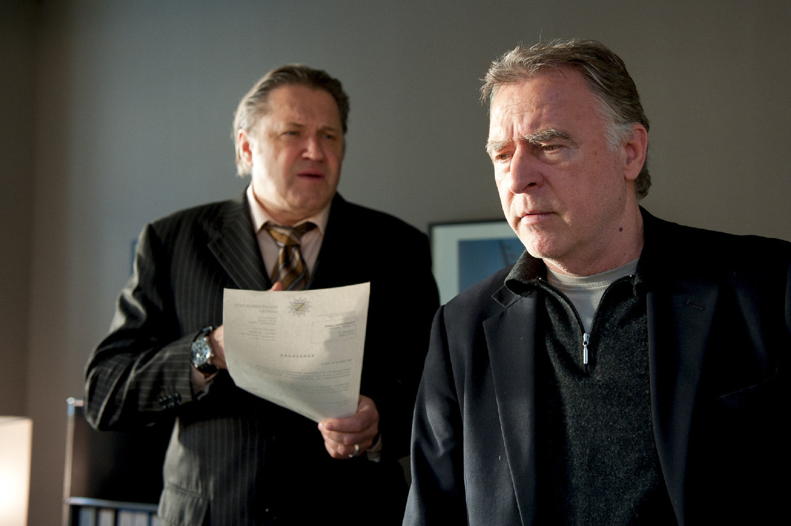 Hajos letzter FallHajo (Andreas Schmidt-Schaller, r.) hat bei Kriminalrat Woernle (Michael Brandner, l.) seine Kündigung eingereicht. Dieser will sie jedoch nicht annehmen...Bild: © ZDF und Uwe Frauendorf
