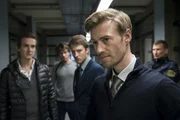 Aus bestem Hause(v.l.n.r.) Sascha Quade als Fritjof, Steffen Schroeder als Tom Kowalski, Jan Nikolaus Cerha als Clemens Langelotz, Eric Bouwer als Filip LachmannBild: © ZDF/Uwe Frauendorf