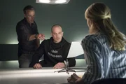 Auf eigene RechnungDie Leiterin des Reviers Enn Waller (Petra Zieser, l.) wehrt sich entschieden gegen die Vorwürfe von Hajo (Andreas Schmidt-Schaller, r.), dass auf ihrer Wache gemobbt werde. Ihr Kollege Krenz (Klaus Zmorek, M.) beäugt die Situation misstrauisch aus dem Hintergrund.Bild: © ZDF und Uwe Frauendorf
