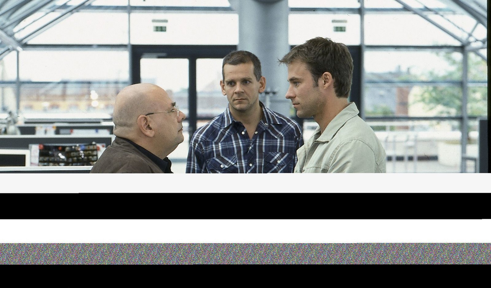 Die LiebesfalleHajo (Andreas Schmidt-Schaller, Mi.) und Ina (Melanie Marschke, r.) nehmen Thomas Gerhardt (Gerd Silberbauer, l.) ins Kreuzverhör.Bild: © Uwe Frauendorf