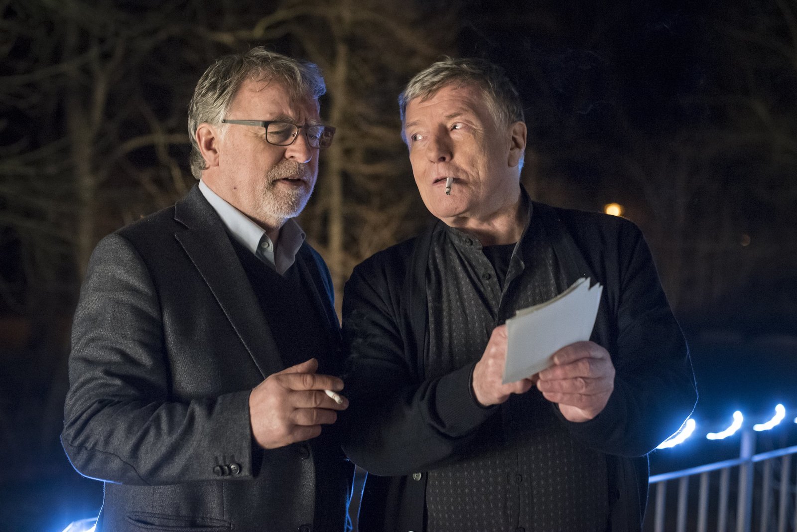 VerratHajo Trautzschke (Andreas Schmidt-Schaller, l.) und sein alter Freund Ewald Kutz (Manfred Zapatka, r.) erinnern sich an die gemeinsame Jungend in der DDR.Bild: © ZDF und Uwe Frauendorf