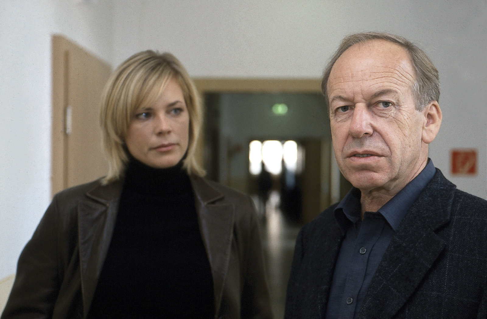 Der unsichtbare TodIna (Melanie Marschke, l.) begleitet Dr. Jordan (Rüdiger Vogler, r.), der so stark verstrahlt wurde, dass er sterben muss, bei seinen letzten Erledigungen.Bild: © ZDF und Uwe Frauendorf