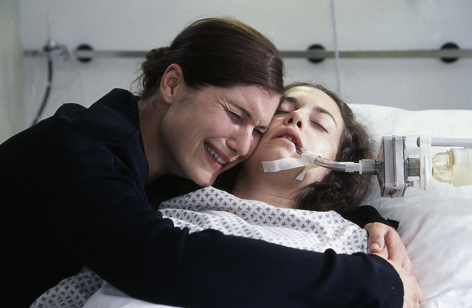 GlaubenskriegerElisabeth Steinmann (Yasmina Djaballah, l.) trauert um ihre Tochter Barbara (Lotte Letschert, r), die an den Folgen einer Arsenvergiftung starb.Bild: © ZDF und Uwe Frauendorf