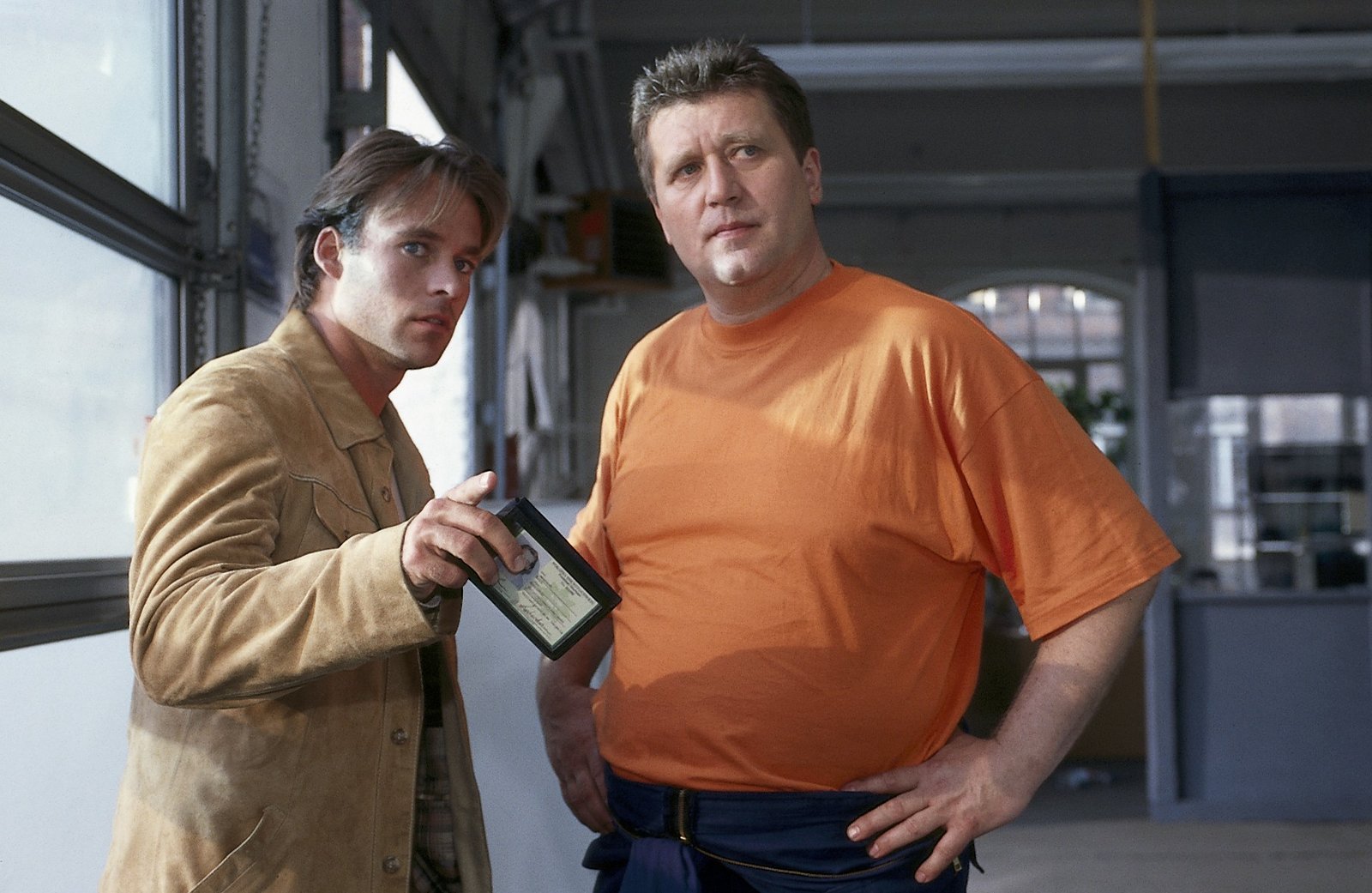 CrashJan (Marco Girnth, l.) befragt den Werkstattbesitzer Manfred Ehlers (Bruno F. Apitz, r.):Bild: © Uwe Frauendorf