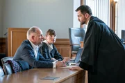 Das VogelmädchenStaatsanwalt Dr. Binz (Michael Rotschopf, r.) versucht, in einem Gerichtsverfahren dem dubiosen Bauunternehmer Hans Woitek (Frank Röth, l.) illegale Schwarzarbeit nachzuweisen. Die Anwältin Martina Back (Natascha Paulick, M.) verteidigt den Angeklagten.Bild: © ZDF und Uwe Frauendorf.