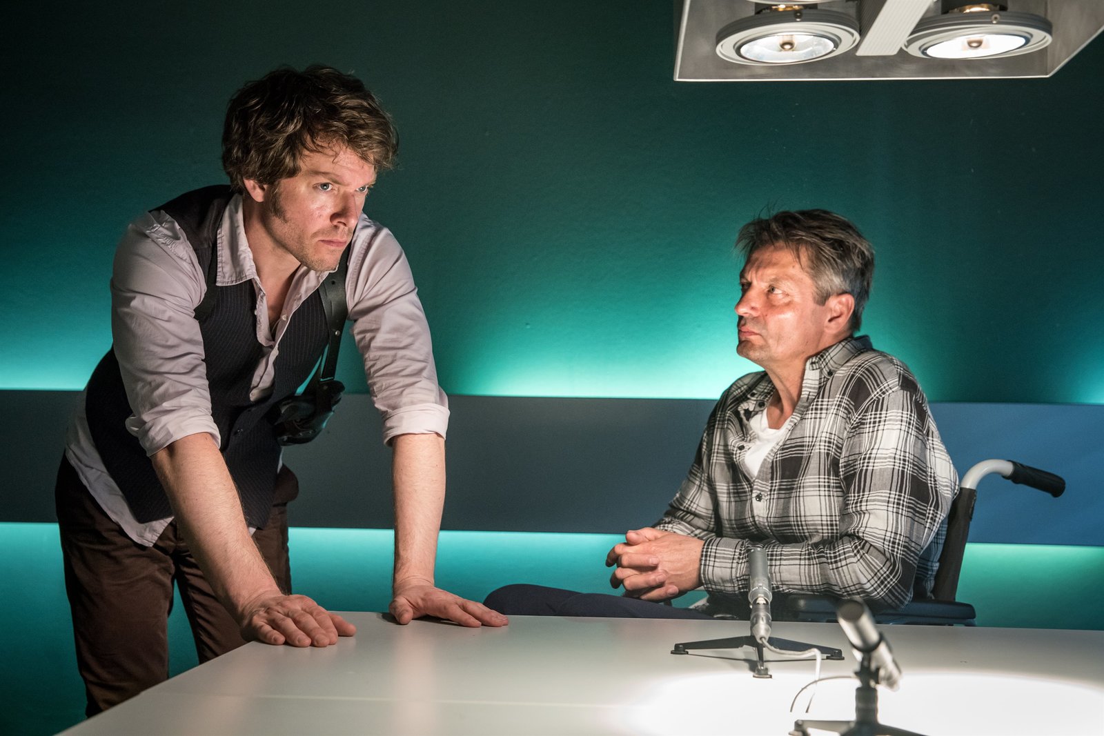 CrystalWährend der laufenden Ermittlungen trifft Tom Kowalski (Steffen Schroeder, l.) auf seinen ehemaligen Vorgesetzen Thomas Rückert (Götz Schulte, r.), der auf tragische Weise nun an den Rollstuhl gefesselt ist.Bild: © ZDF und Uwe Frauendorf.