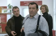 Mord ist sein HobbyHerbert Kochler (Günter Schubert, Mi.) stellt sich der Soko und behauptet gegenüber Hajo (Andreas Schmidt - Schaller, l.) und Ina (Melanie Marschke, r.), einen Mord begangen zu haben.Bild: © Uwe Frauendorf