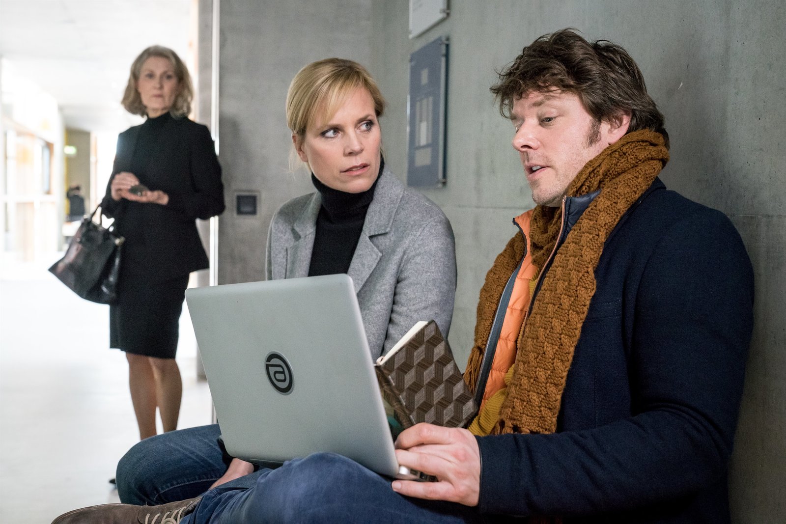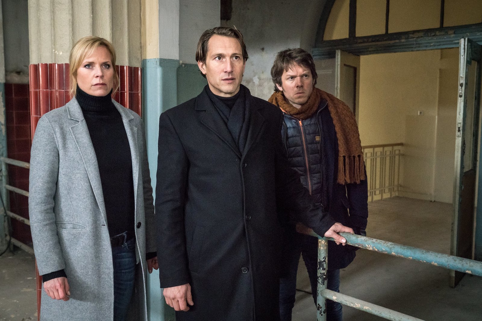 Der Fall WendtKönnen Ina Zimmermann (Melanie Marschke, l.) und Tom Kowalski (Steffen Schroeder, r.) eine weitere Tragödie im Fall Wendt noch rechtzeitig verhindern? Dazu muss aber Florian Wendt (David Rott, M.) sein Schweigen brechen.Bild: © ZDF und Uwe Frauendorf.