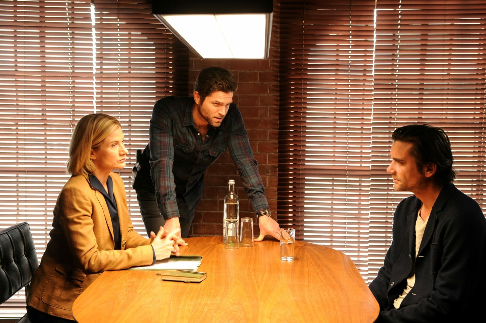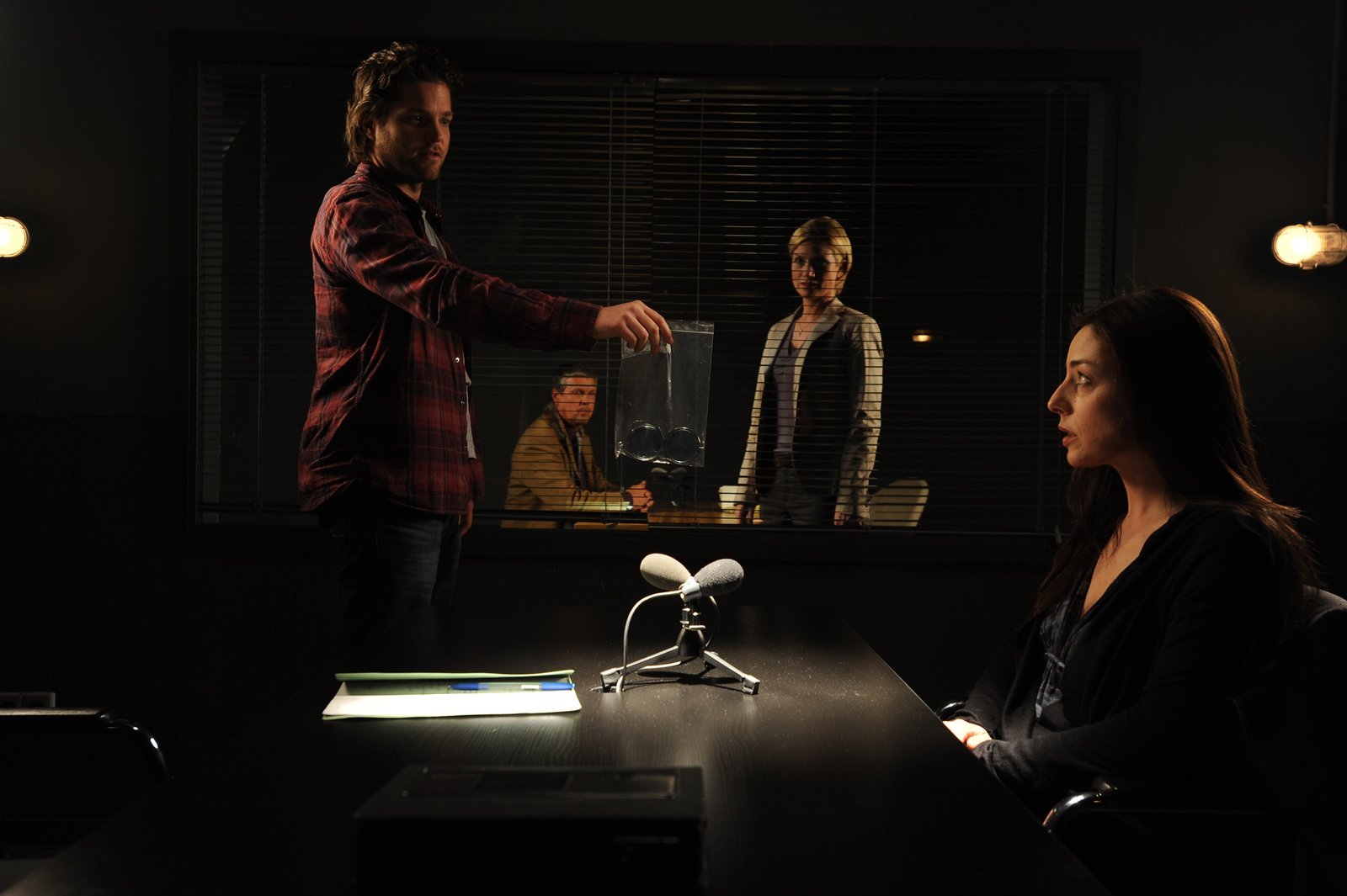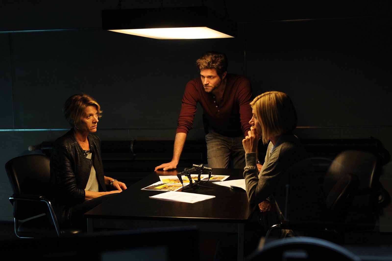 Goldene HändeMartina Seiffert (Astrid M. F¸nderich, l.) und Jo Stoll (Peter Ketnath, M.) nehmen Moritz Tennen (Patrick Rapold, r.) in die Mangel: Tennen hatte eine Auseinandersetzung mit dem Opfer.Bild: © Sky Krimi