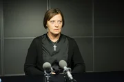 Im Namen GottesRita Poth (Michaela Caspar) ist geschockt, als die Kommissare ihr unterstellen, dass sie mit dem Tod ihres Sohnes etwas zu tun haben soll.Bild: © ZDF und Markus Fenchel.