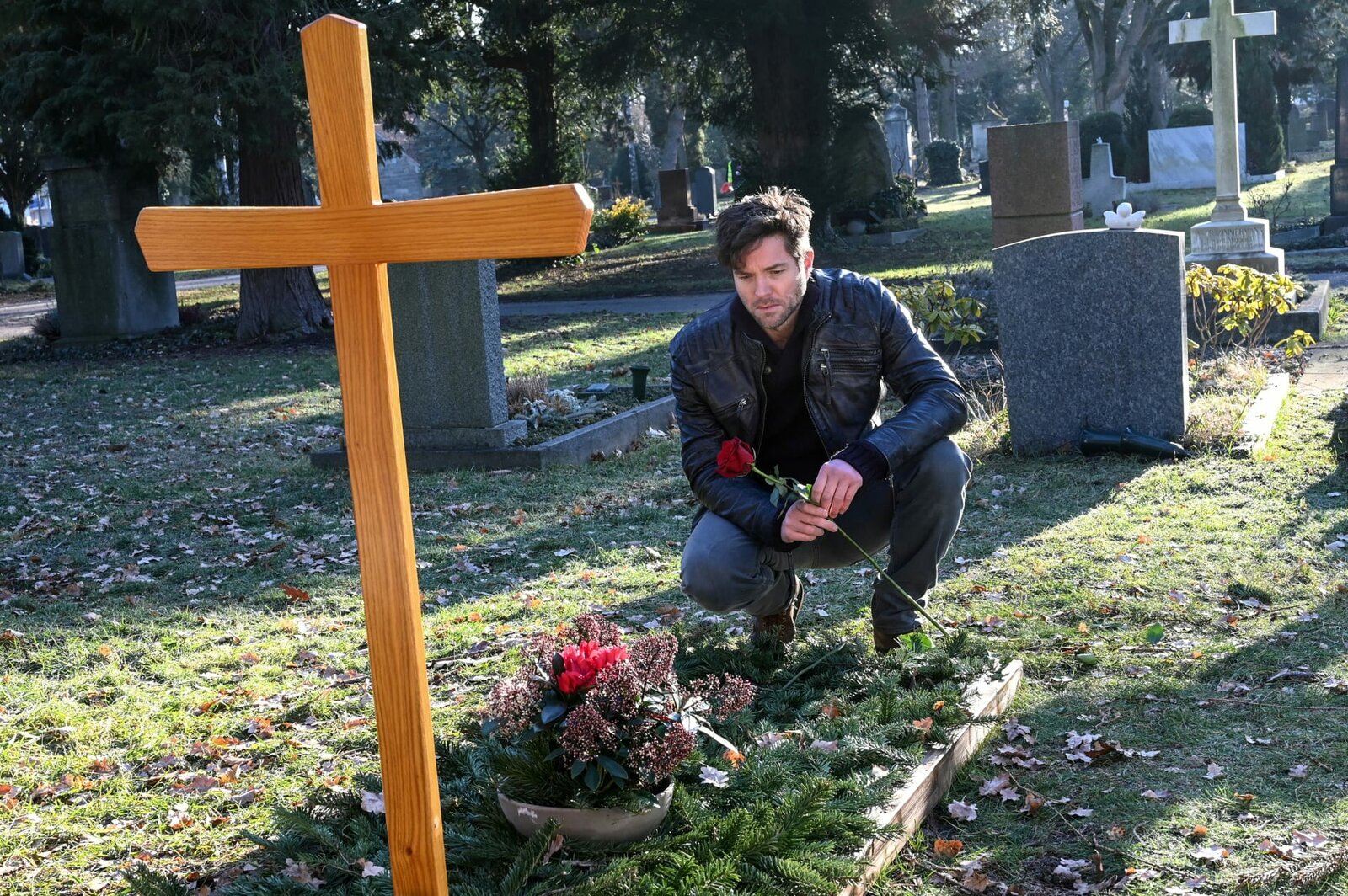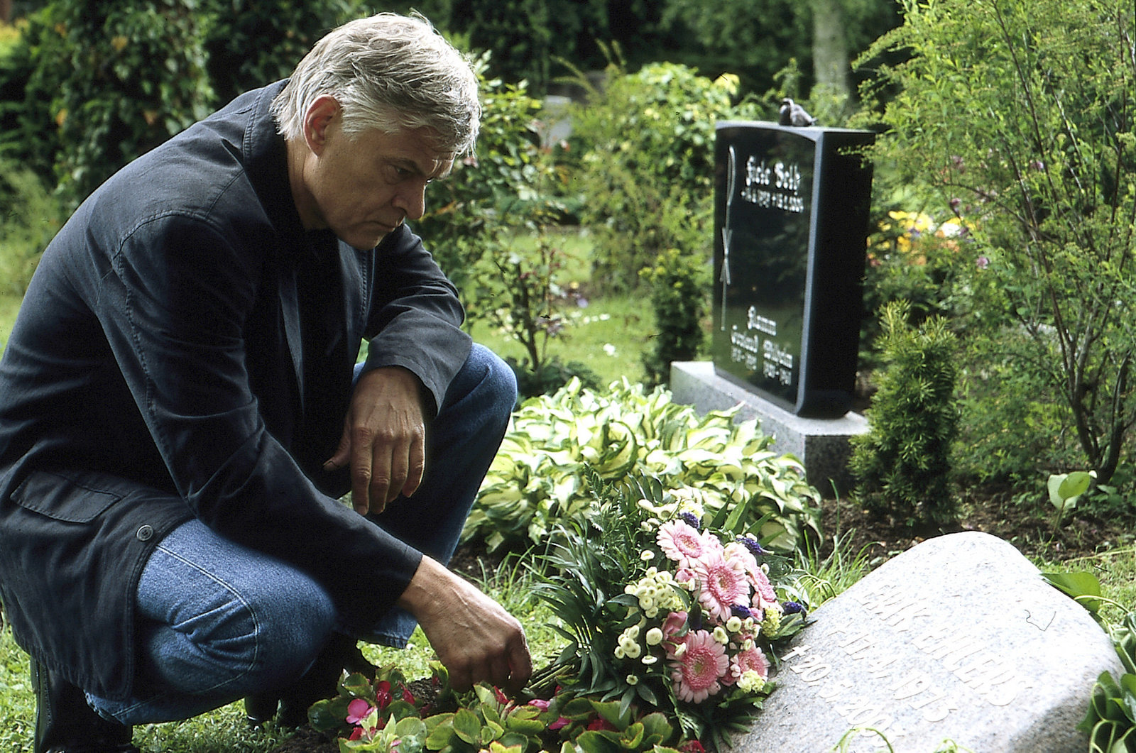 Hopp & ExJo Stoll (Peter Ketnath) trauert an Henriettes Grab und macht sich schwere Vorwürfe.Bild: © Sky Krimi