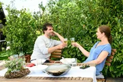 KaffeefahrtSelma Kirsch (Yve Burbach) und ihr neuer Freund Simon Baum (Kai Schumann) stoßen an auf ihre Liebe.Bild: © Sky Krimi