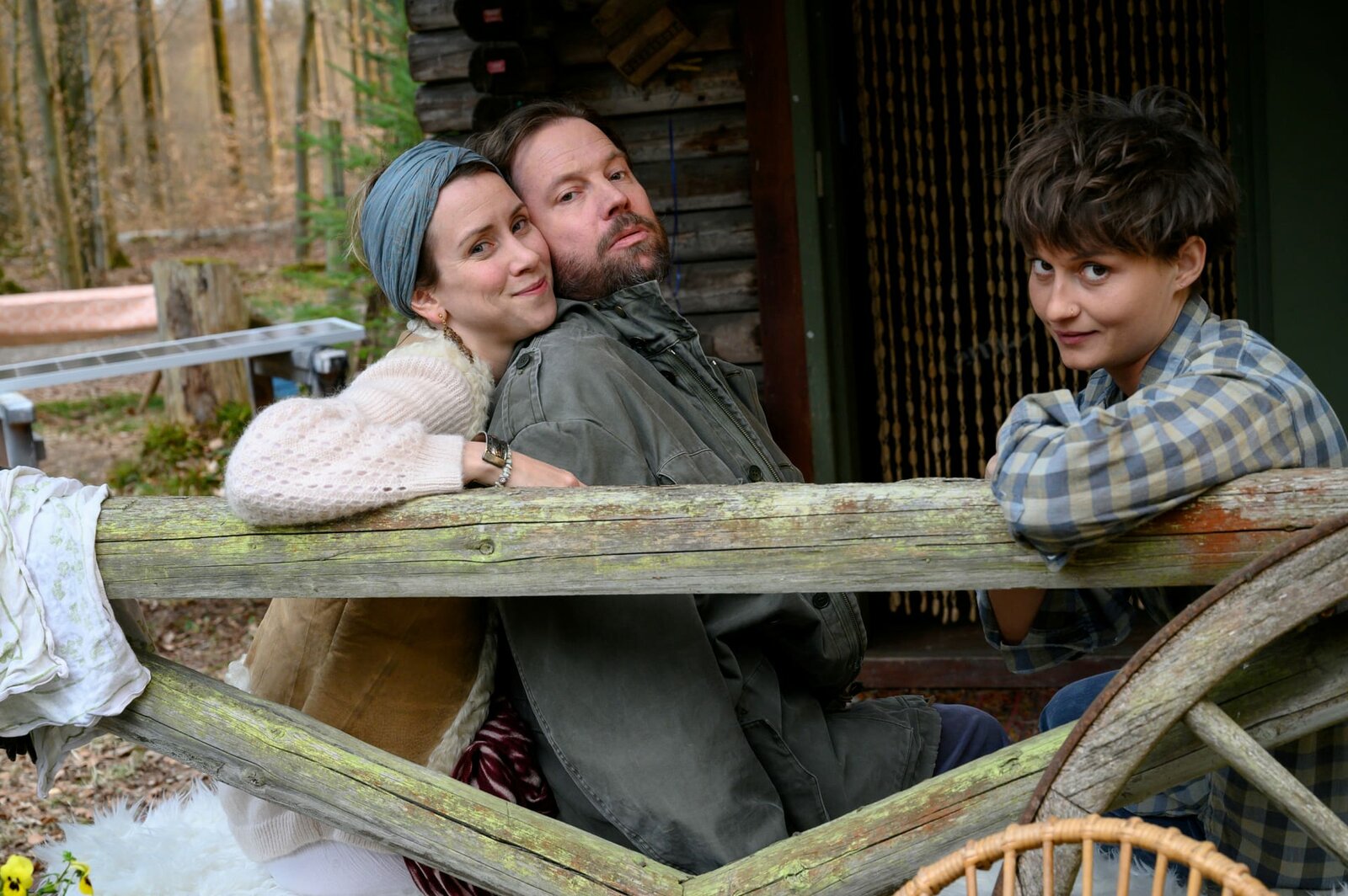 Der BienenstockVor dem Mord an Stefan May (Till Bauer, M.) genossen Ametis May (Lena Dörrie, l.) und Lisa Blumhard (Kim Bormann, r.), Mitglieder der Bienenstock-Kommune, ein scheinbar sorgloses und friedvolles Leben.Bild: © Sky Krimi