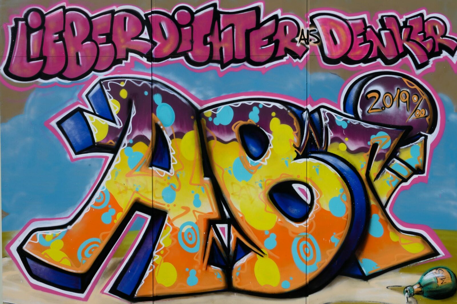 Abi-KriegDas Abimotto der Abiturienten des Goethe-Gymnasiums "Lieber Dichter als Denker" wurde als Graffiti auf der Schulwand verewigt.Bild: © Sky Krimi