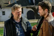 Der BienenstockTote Bienen und ein toter Imker - Jo Stoll (Peter Ketnath, r.) befragt Landwirt Mark Dallinger (Patrick von Blume, l.) nach seinem Alibi.Bild: © Sky Krimi