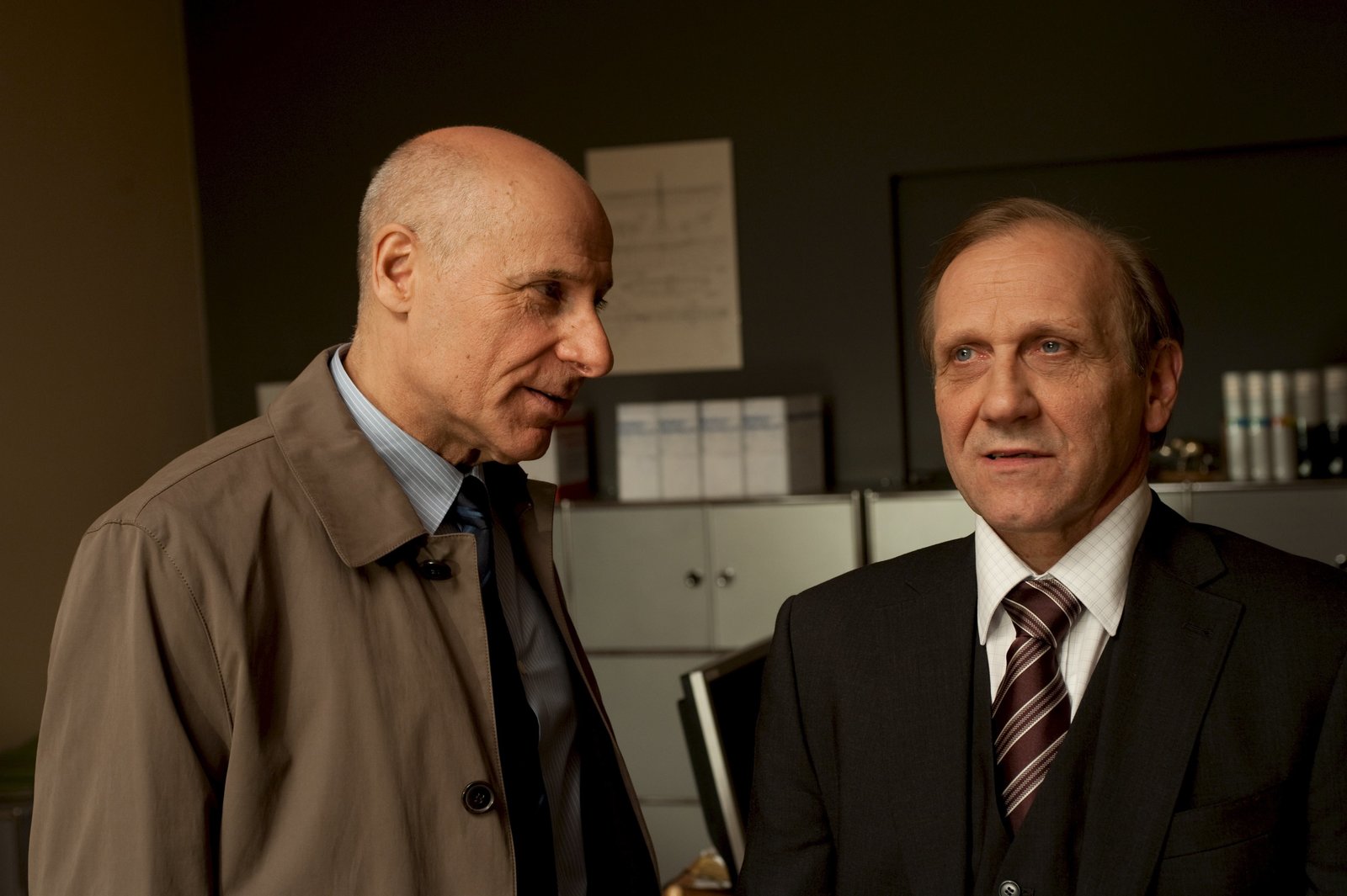 StallorderMichael Kaiser (Karl Kranzkowski, r.) gerät in Konflikt mit dem Ministerialdirigenten Dr. Ludwig Beierle (Edgar Marius Marcus, l.). Doch Kaiser lässt sich nicht politisch unter Druck setzen.Bild: © ZDF und Markus Fenchel