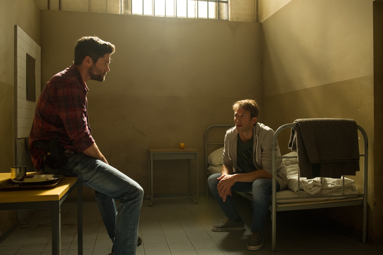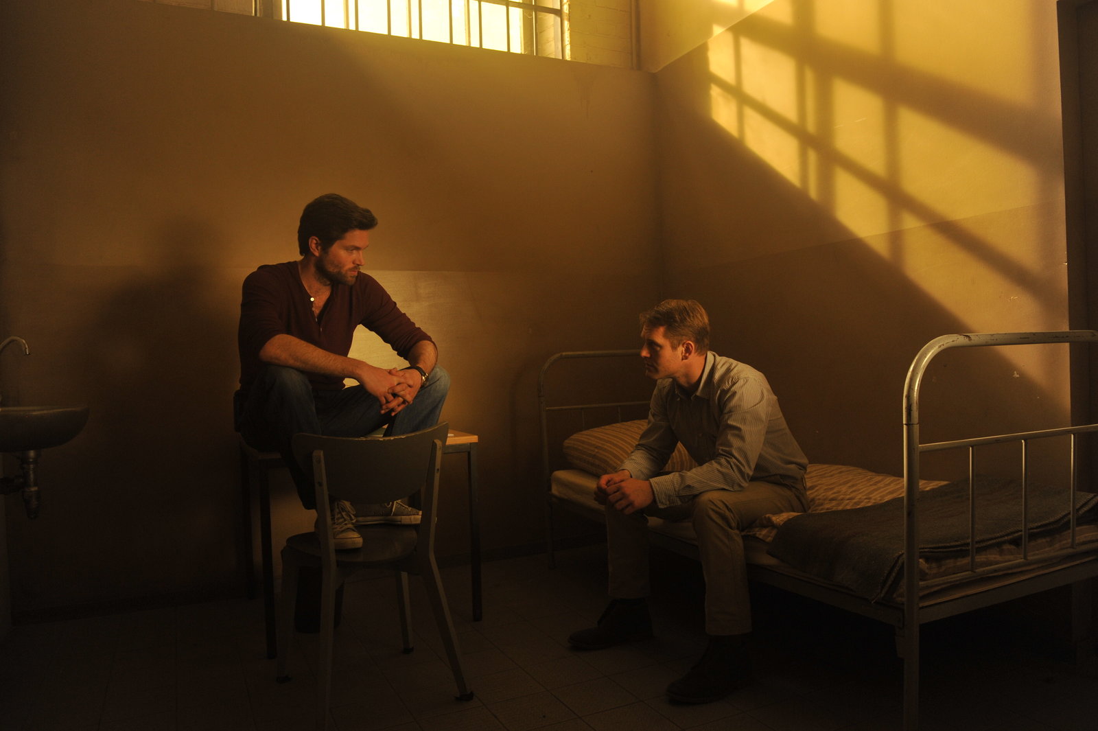 Im Namen GottesJo Stoll (Peter Ketnath, l.) versucht, den verschlossenen Sebastian Köhler (Tillbert Strahl, r.) zum Reden zu bringen. Als Sebastian merkt, dass Jo es ernst meint, öffnet er sich allmählich.Bild: © ZDF und Markus Fenchel.
