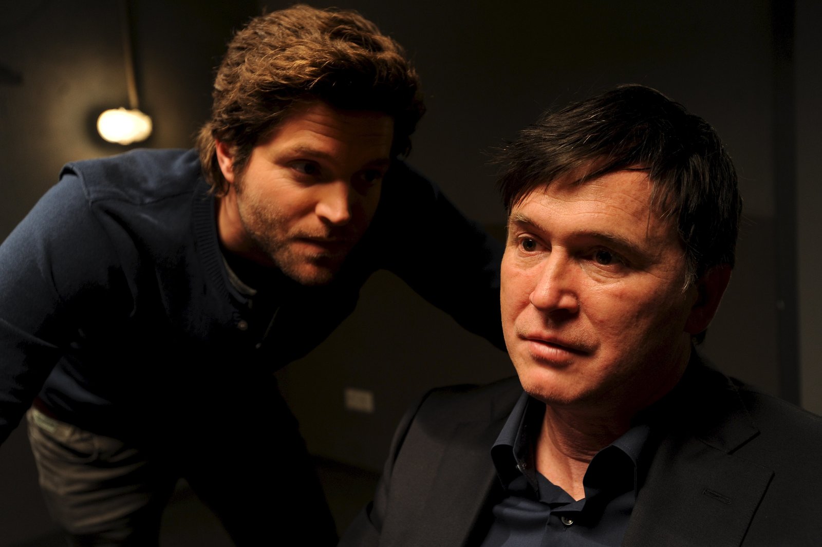 La vie en roseVictor Millet (Johannes Franke, r.) wollte die Chance nutzen und sich mit seinem Gànner Felix Neuwângler (Lutz Herkenrath, l.) aussprechen. Aber das Gesprâch der beiden wird von einem Anruf der Polizei gestàrt.Bild: © Sky Krimi