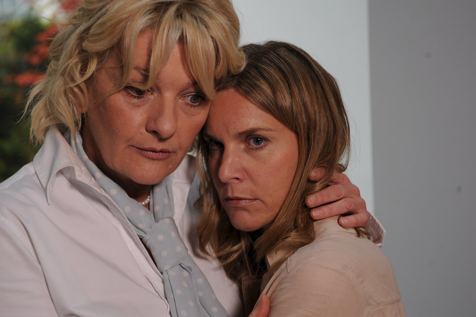 Koi AhoiVivienne Sänger (Nele Mueller-Stöfen, r.) ist vollkommen verstört, nachdem sie ihren Mann tot im Garten gefunden hat. Linda Kohlhaas (Saskia Vester, l.), ihre Freundin und gleichzeitig Nachbarin, versucht sie zu beruhigen.Bild: © ZDF und Markus Fenchel