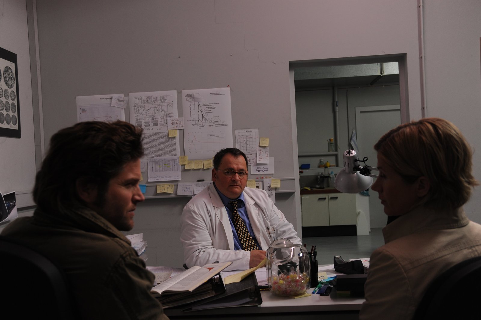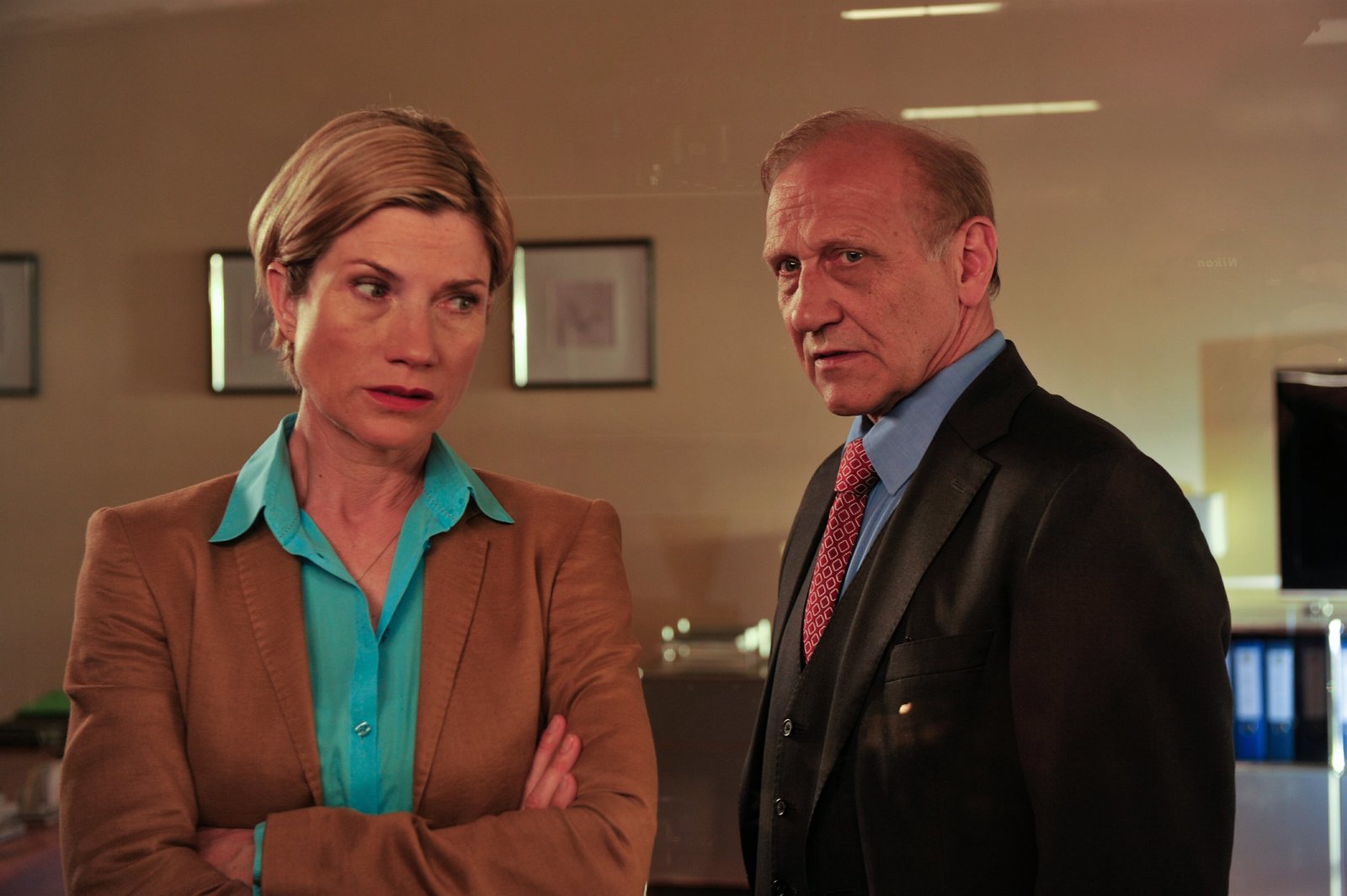 KollateralschadenJo Stoll (Peter Ketnath) hat Johanna Illinger (Eva Verena Müller) Laborergebnisse vorgelegt, die sie geprüft hat und welche eindeutig gefälscht sind. Die Conrtrollerin hat dafür keine Erklärung.Bild: © ZDF und Markus Fenchel.