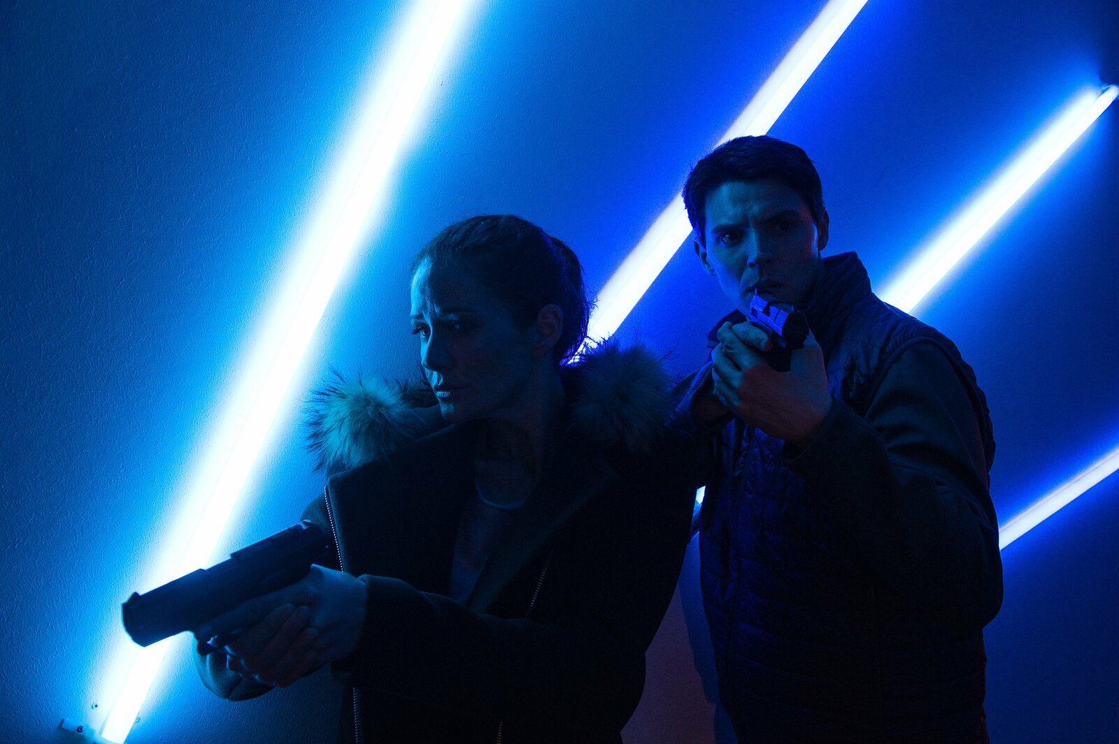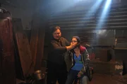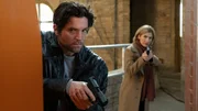 Falsche Zeit, falscher OrtSOKO-Kommissar Rico Sander (Benjamin Strecker, r.) versucht Ariane Gerber (Lili Zahavi, l.) zu befreien. Doch schaffen sie es, dem gewaltbereiten Entführer zu entkommen?Bild: © ZDF und Markus Fenchel