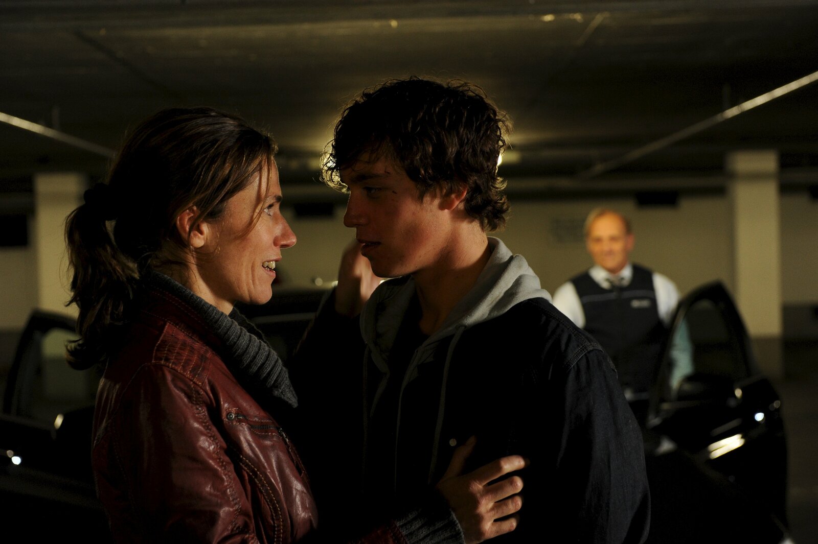 RacheHat die SOKO Stuttgart den Entführungsfall gelöst? Zumindest scheinen Mutter Carla Funke (Julia Bremermann, l.) und ihr Sohn Alex (Daniel Bizer, M.) wieder glücklich vereint zu sein. Kriminaldirektor Michael Kaiser (Karl Kranzkowski, r.) verfolgt die Szene im Hintergrund.Bild: © ZDF und Markus Fenchel