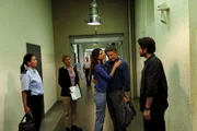 UnversöhnlichMiriam Scheerbeck (Suzan Anbeh, M.) verabschiedet sich von ihrem Ehemann Bernd (Max Urlacher, 2.v.r.) - die beiden werden gleich getrennt voneinander vernommen. Die SOKO-Stuttgart-Ermittler Martina Seiffert (Astrid M. Fünderich, 2.v.l.) und Jo Stoll (Peter Ketnath, r.) sowie eine Beamtin beobachten die beiden geduldig.Bild: © ZDF und MARKUS FENCHEL.