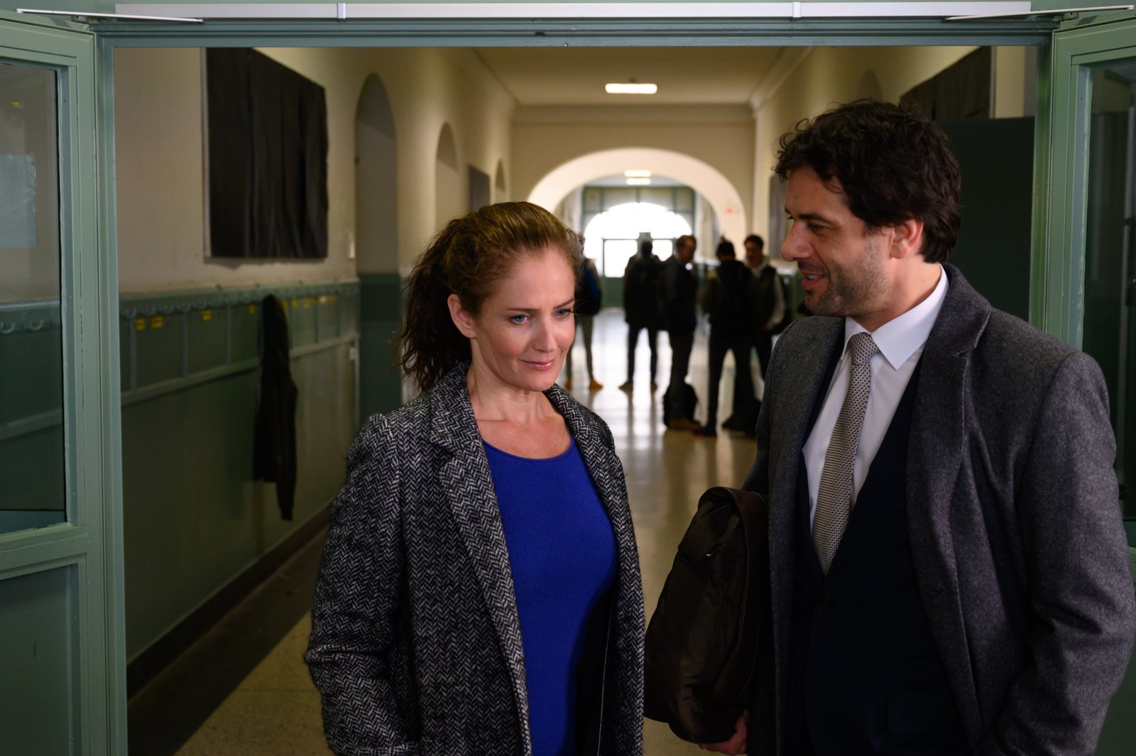 Abi-KriegSelma Kirsch (Yve Burbach) trifft am Tatort auf ihren ehemaligen Schulkameraden Simon Baum (Kai Schumann).Bild: © ZDF und Markus Fenchel.