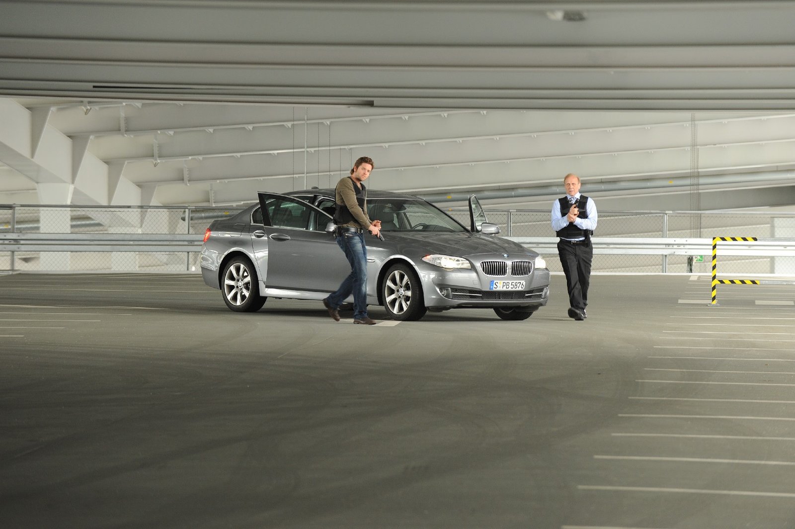 LösegeldMit gezueckter Waffe: Kommissar Joachim Stoll (Peter Ketnath, l.) und sein Chef Michael Kaiser (Karl Kranzkowski, r.) naehern sich vorsichtig dem Wagen des mutmasslichen Entfuehrers. Doch der scheint bereits ueber alle Berge zu sein...Bild: © ZDF und Markus Fenchel