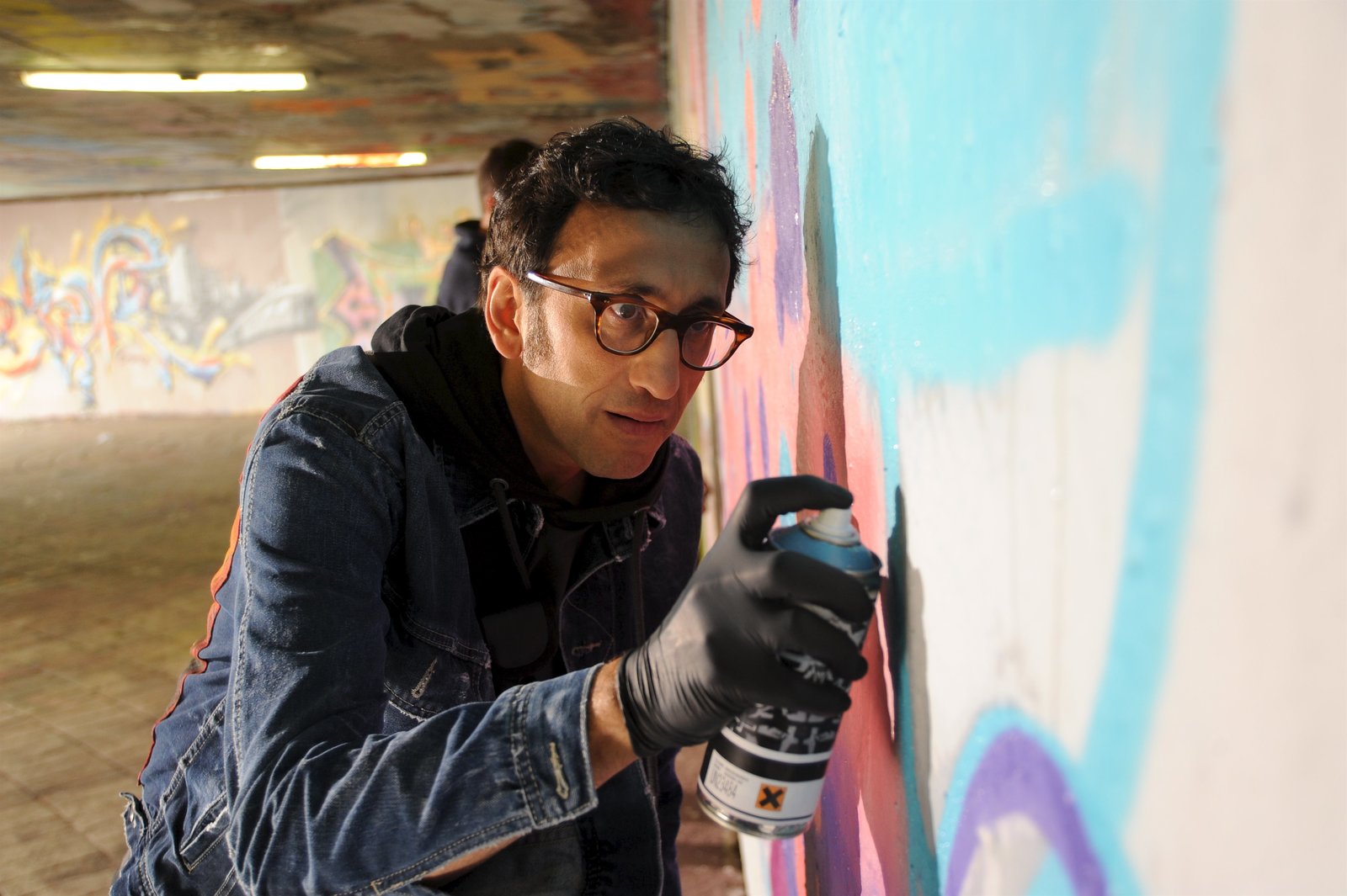 Wombats EndeUm den Sprayern zu beweisen, dass er die wahre Sprayerlegende ist, sprüht Jan Arnaud (Mike Zaka Sommerfeldt) ein Graffiti an die Wand der "Hall of Fame".Bild: © ZDF und Markus Fenchel
