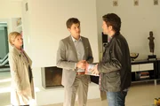 Die AufreißerJörn Wagner (Matthias Dietrich, M.) erklärt Kommissar Jo Stoll (Peter Ketnath, r.) die verschiedenen Flirttechniken, die er und sein Geschäftspartner entwickelt und erfolgreich vermarktet haben. Martina Seiffert (Astrid M. Fünderich, l.) hört interessiert zu.Bild: © ZDF und Markus Fenchel
