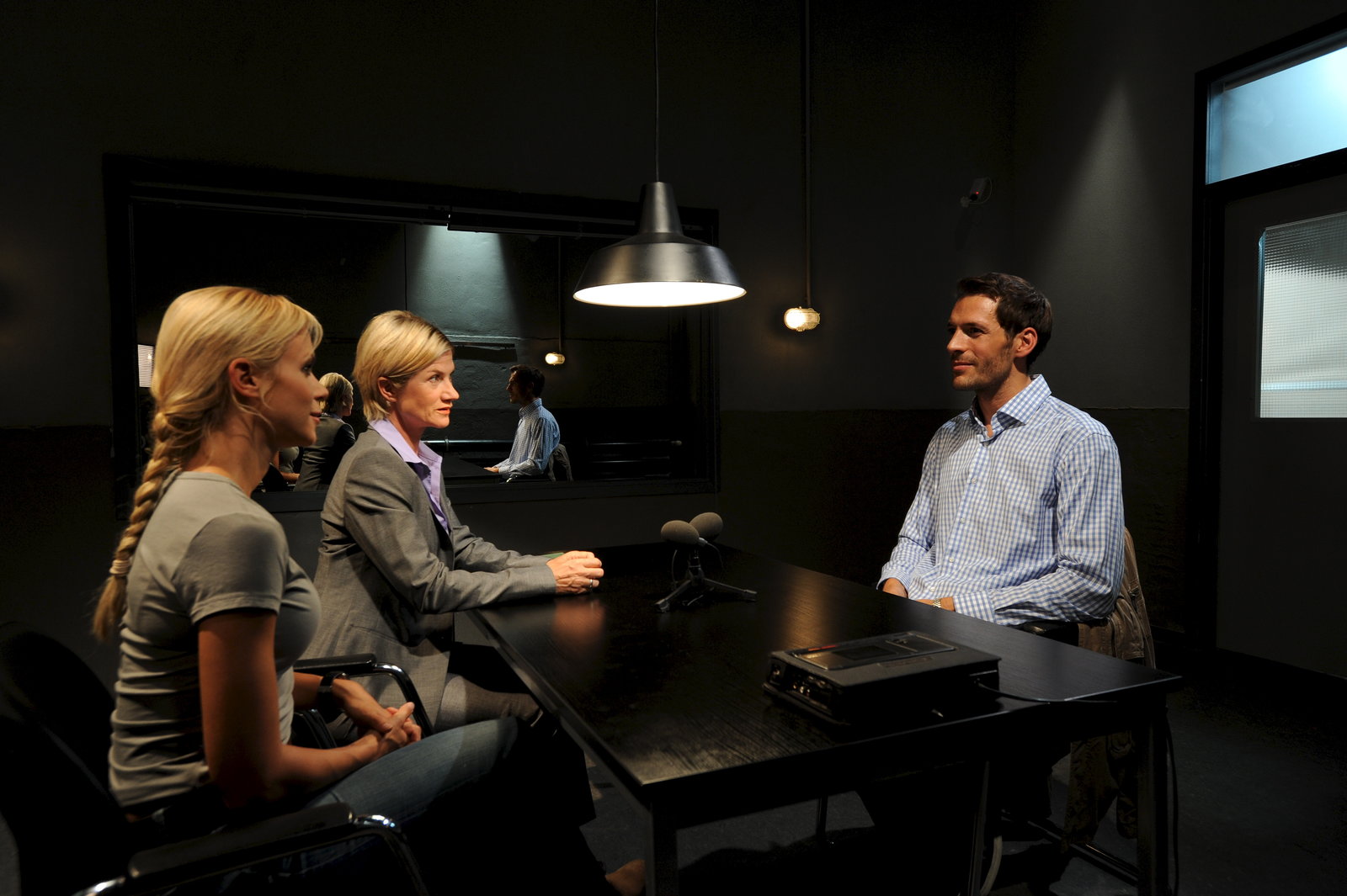 Club der HexenMartina Seiffert (Astrid M. Fünderich, M.) und Anna Badosi (Nina Gnädig, l.) befragen den Lehrer Marcus Jäger (Alexander Mazza, r.) dazu, dass er am Tatabend mit dem Opfer, einer Schülerin von ihm, telefoniert hat. Wollte er sich mit Jessica treffen, um die Mobbing-Sache zu klären und ging dabei zu weit?Bild: © ZDF und Markus Fenchel