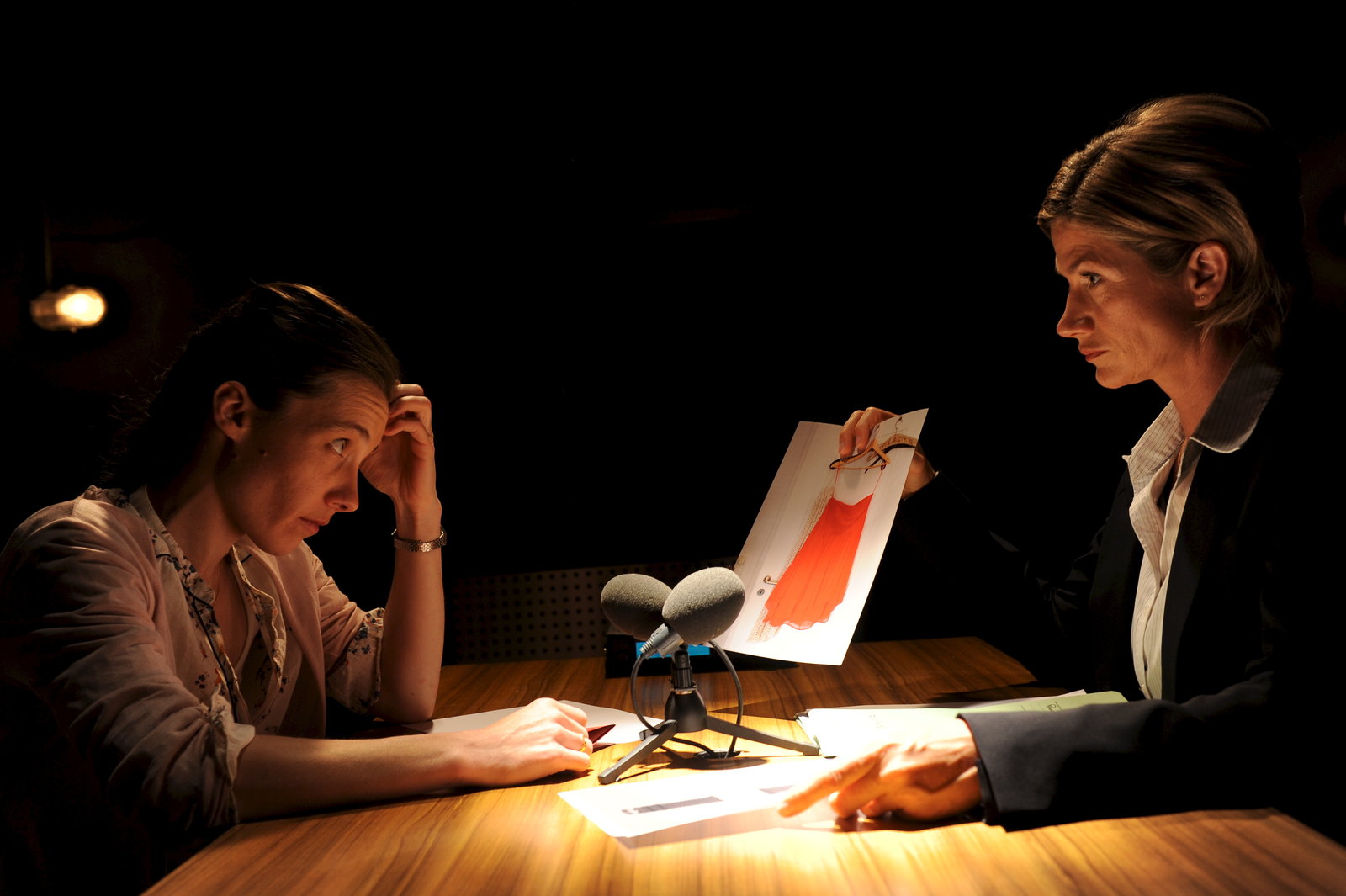 FamilienbandeMartina Seiffert (Astrid M. Fünderich, r.) zeigt Michaela Medinger (Katja Bürkle, l.) ein Foto von einem Kleid, dass man bei ihrer verstorbenen Schwester gefunden hat. Es handelt sich um ein sehr teures Einzelstück. Woher hatte die Auszubildende so viel Geld?Bild: © ZDF und Markus Fenchel